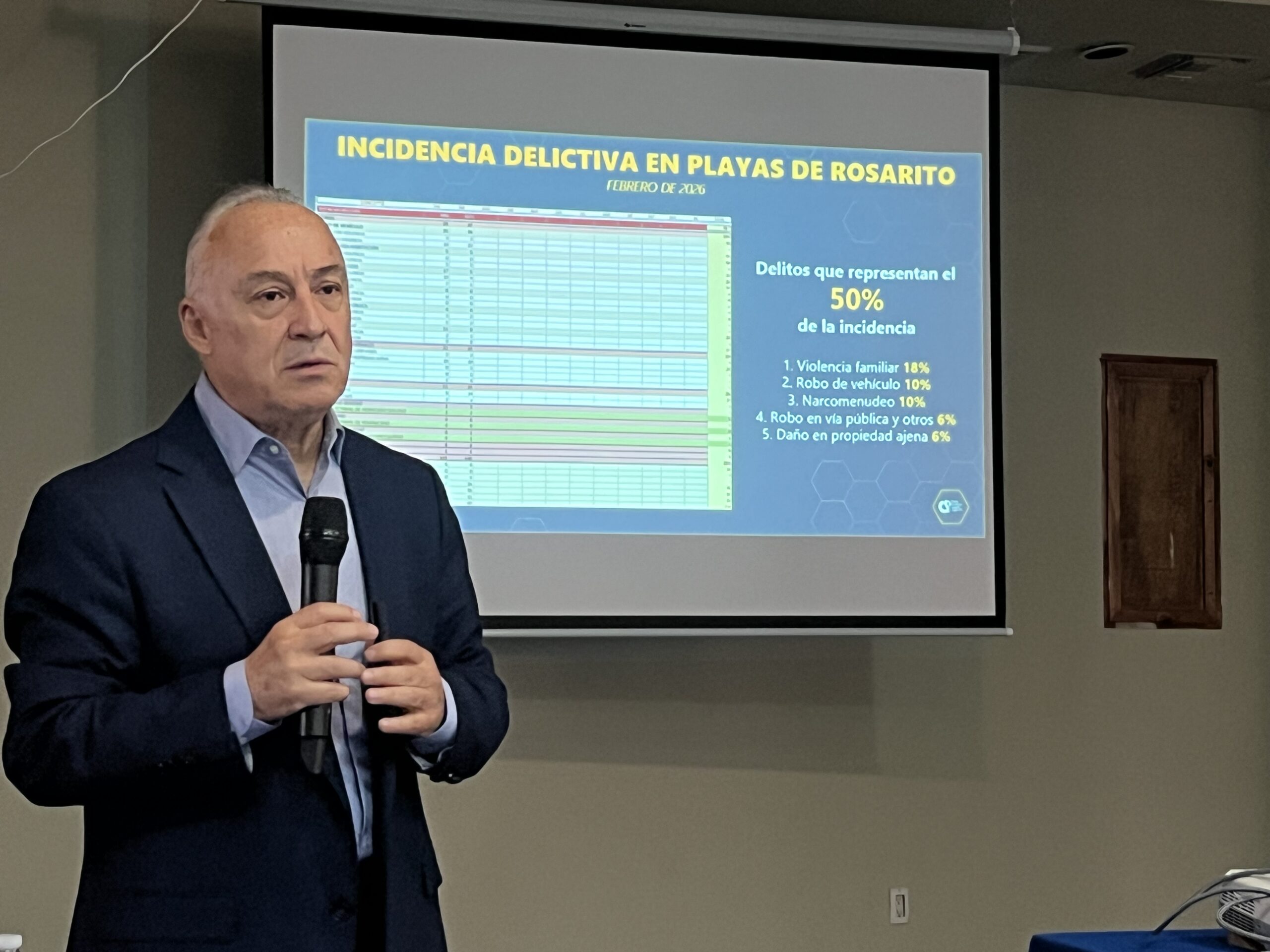 Roberto Quijano Sosa informó que de acuerdo a los datos con que cuenta el Consejo Ciudadano de Seguridad Pública del Estado, la incidencia delictiva en Playas de Rosarito ha venido disminuyendo en los últimos 11 años, para ubicarse en 467 delitos en total en Enero y Febrero de este 2026, pero en el delito de violencia familiar ha habido un alarmante incremento del 52% en el primer bimestre del 2026 comparado con el mismo periodo del 2025, por lo que “se tienen que tomar cartas en el asunto”.