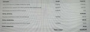 De acuerdo a una contribuyente en el concepto de contribuciones municipales pago 492.16 en la ciudad de Tijuana, mientras que Rosarito pago 678.84 pesos por el mismo concepto, durante el pago de la refrendo o renovación de la tarjeta de circulación, lo cual generó inconformidad, pues las carreteras y bulevares presentan baches.