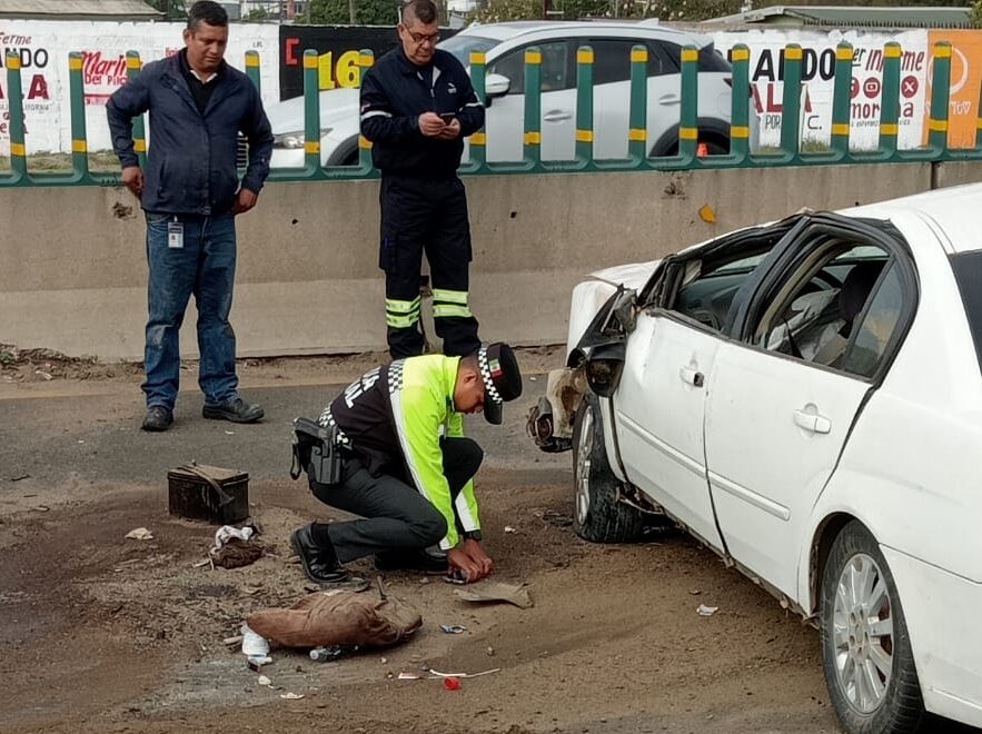 El auto pegó contra el muro divisorio y luego cayó volcado, sin impactar algún otro vehículo.