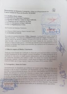 Wilber Ahumada, Coordinador de Control Animal de Rosarito, y Presidente de la Federación de Colegios Veterinarios, realizó una denuncia pública por actos de corrupción y abuso, en el Departamento de Control Animal Municipal. Dicha denuncia se basa en hechos graves y alarmantes que afectan no solo la integridad de las mascotas en resguardo de la Perrera sino también de sus trabajadores.