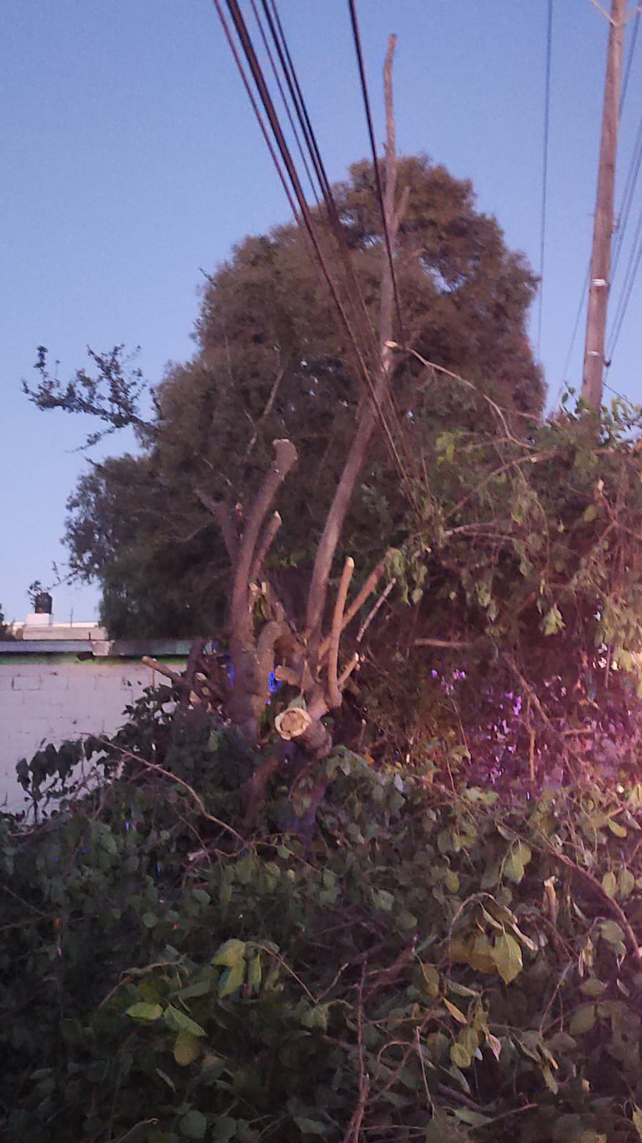 Algunas ramas derribaron cableado público, por lo que tuvieron que intervenir bomberos y servicios urbanos para resguardar la zona y evitar accidentes, sobre todo por los cables de CFE.