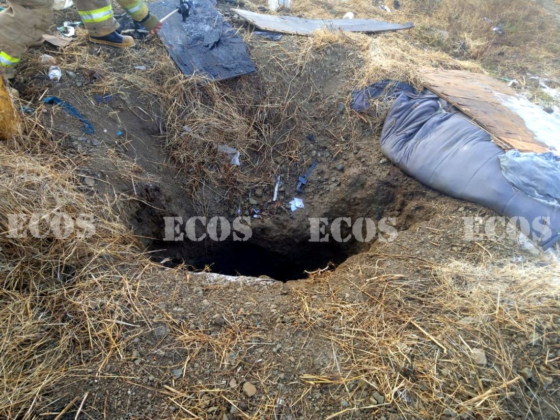 Para llegar a los ductos, los huachicoleros realizaron una excavación de más de un metro de profundidad y de aproximadamente un metro de diámetro junto a un señalamiento de PEMEX.