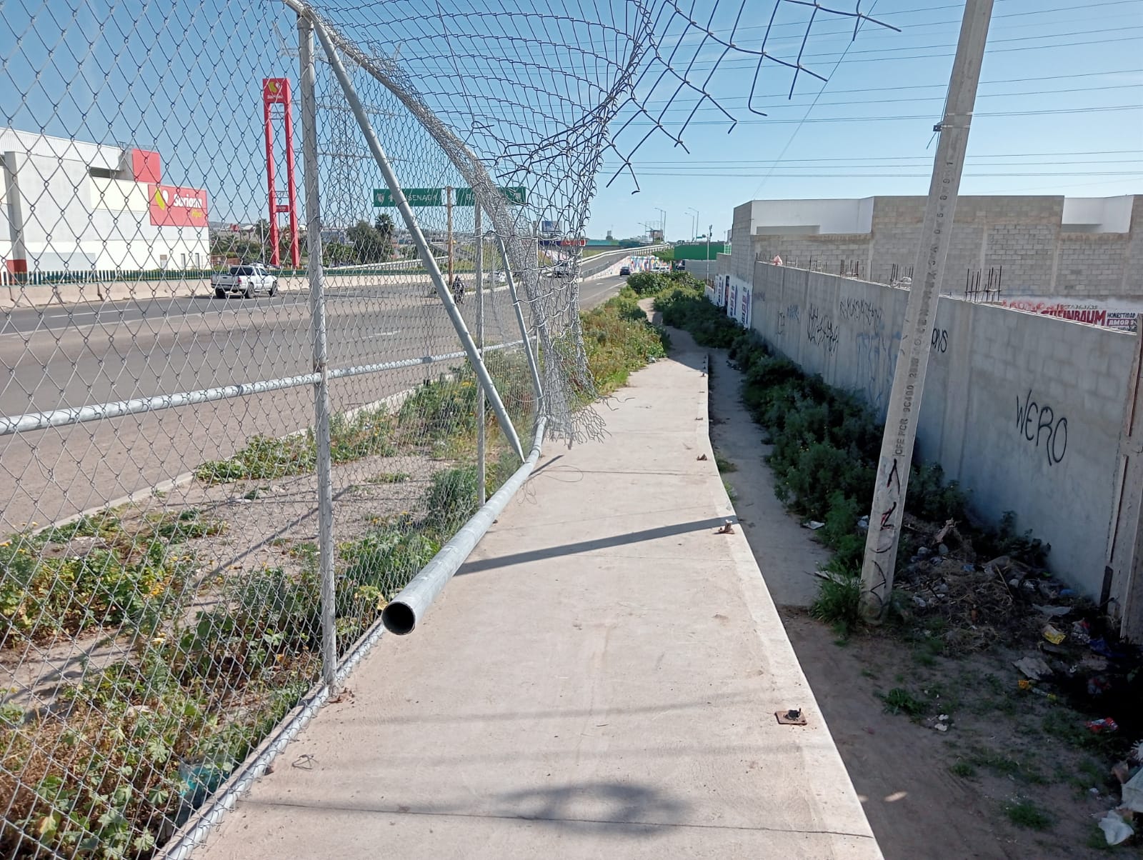 Apenas unas semanas después de haber sido reinstalada, la malla ciclónica desmantelada, nuevamente ha sido saqueada por adictos.