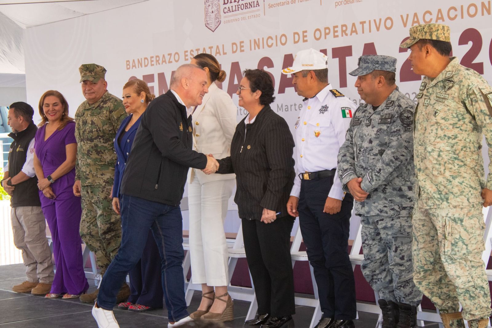El protocolo oficial del lanzamiento del operativo se llevó a cabo en el Centro de Convenciones Metropolitano de Rosarito y estuvo encabezado por la gobernadora Marina del Pilar Ávila Olmeda y la alcaldesa Rocío Adame Muñoz, además de autoridades policiacas de los tres órdenes de gobierno.