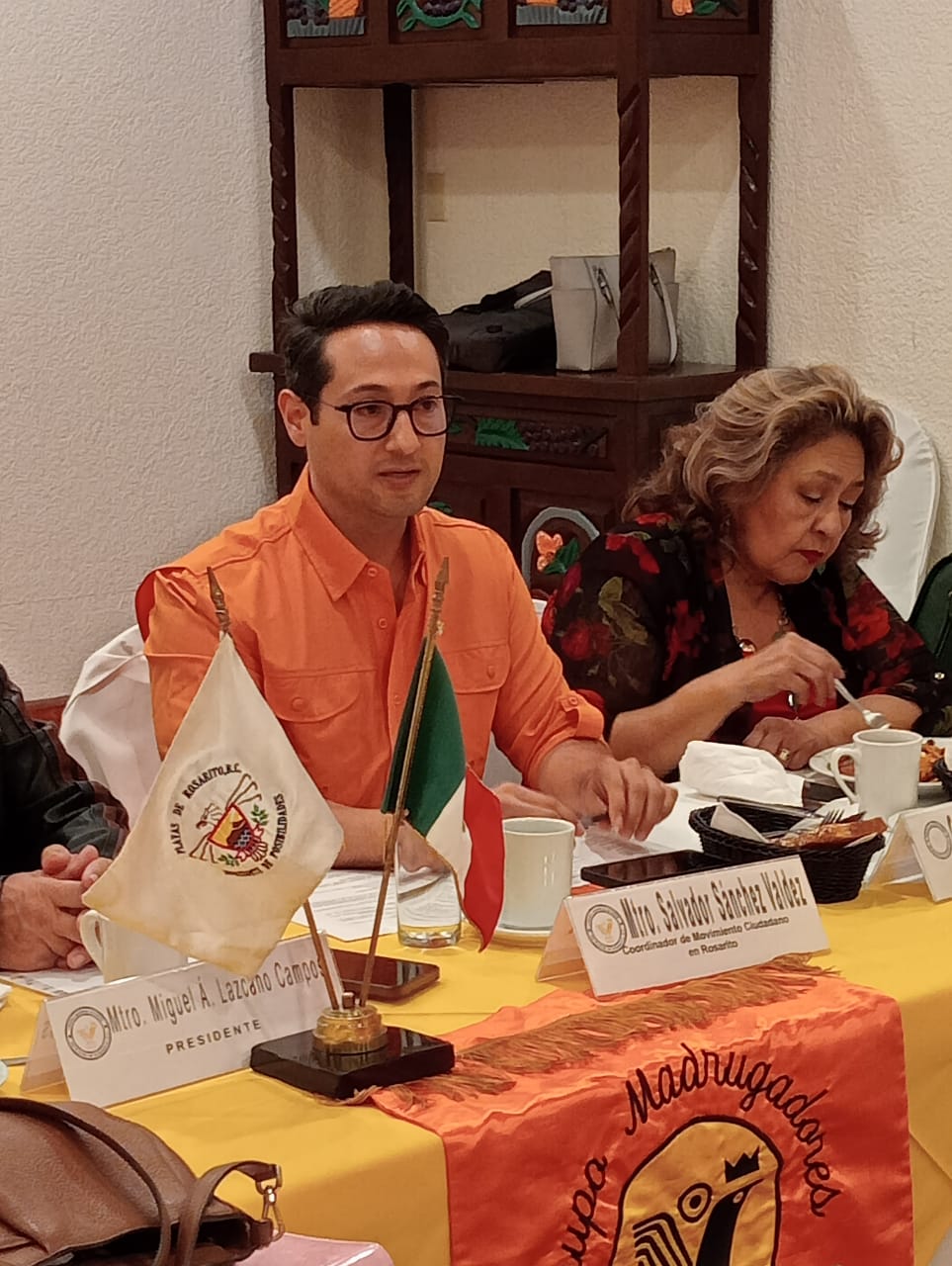 De invitado con el grupo Madrugadores que preside Miguel Ángel Lazcano Campos, el joven dirigente local de MC y quien asumió la dirigencia tras la repentina desbandada de militantes que se sumaron al Partido Verde, respondió cuestionamientos de los presentes y opinó acerca de las viejas prácticas que siguen predominando en los partidos políticos.