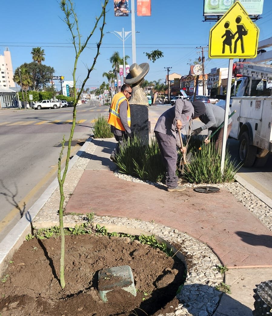Personal del Ayuntamiento informó que las labores de plantación se realizaron a lo largo del bulevar Benito Juárez desde la zona centro hasta la plaza San Fernando, en algunos puntos que quedaron vacíos cuando fueron retiradas palmeras que se secaron.