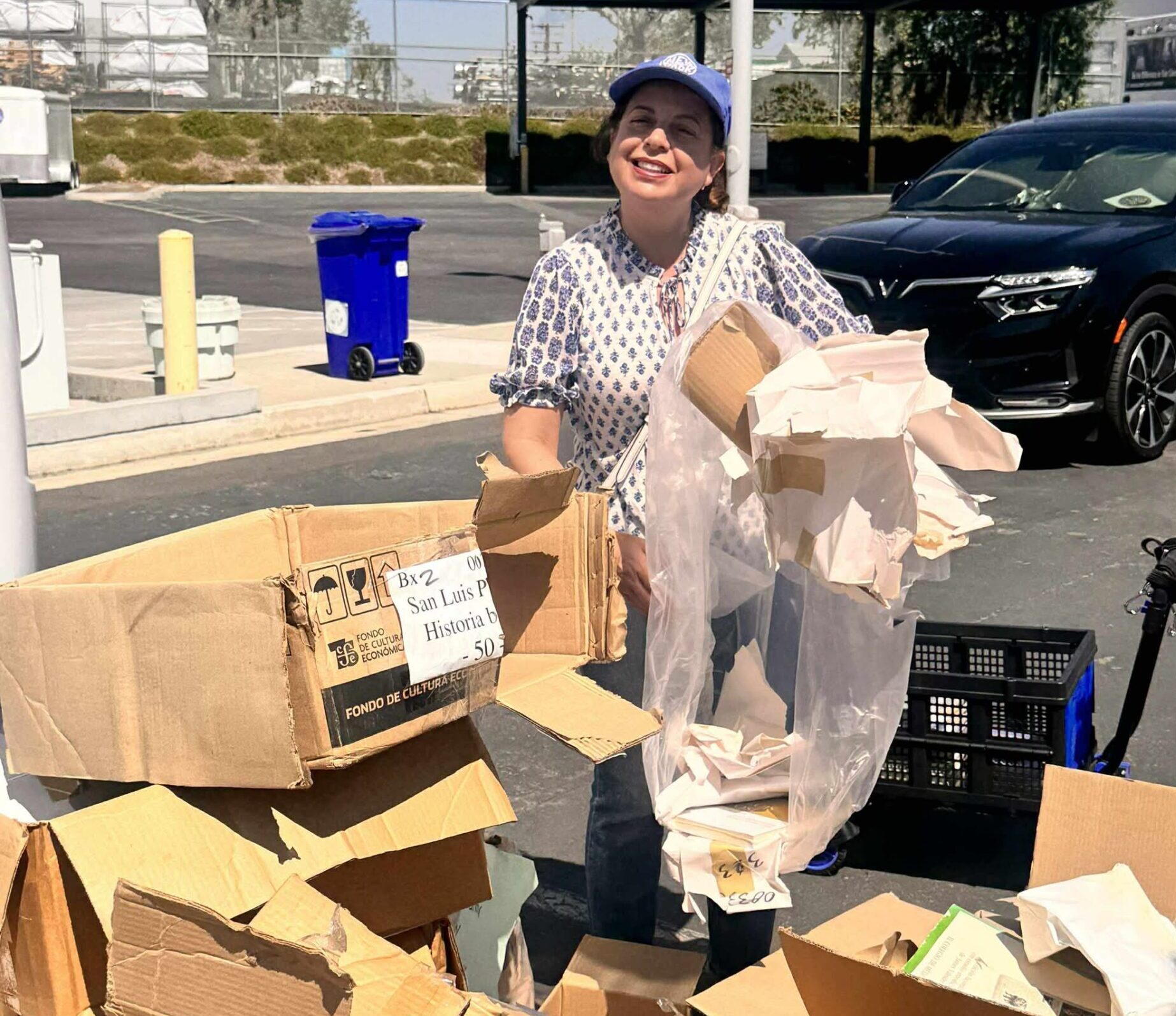 Katia Padilla Bautista, acudió por libros del Fondo de Cultura Económica a San Diego, ella como otras asociaciones civiles de México, viajaron a San Diego, por libros que se encontraban en el estacionamiento que fue sede del FCE, para evitar que las condiciones climáticas dañaran estos ejemplares.