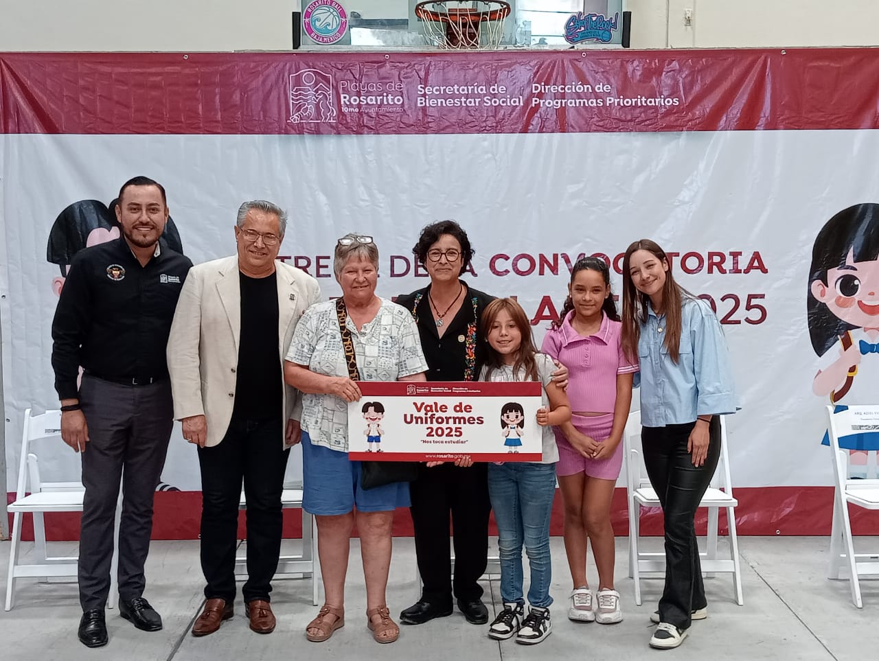 En presencia del delegado de educación Juan Carlos Huerta Ávila y padres de familia, Adame Muñoz se congratuló de poder contribuir con la economía escolar de estas familias rosaritenses beneficiadas con vales de uniformes.