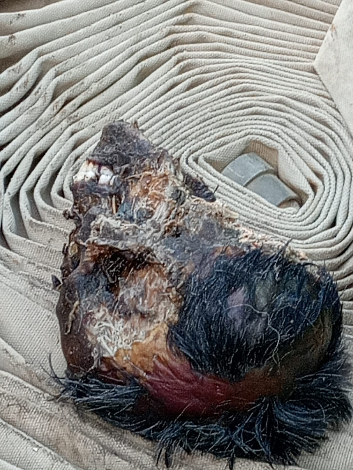 Los agentes se entrevistaron con el encargado de la planta Saúl “N” de 32 años de edad, quien dijo que había observado a los perros jalando el cráneo en el interior del establecimiento.