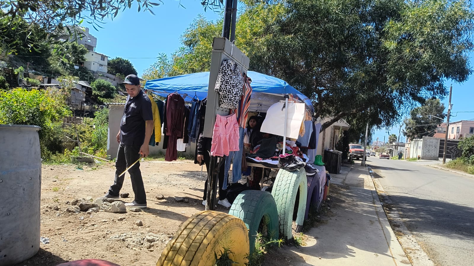 Vecinos de la zona hicieron el reporte al 911 y policías municipales llegaron al lugar y solicitaron a los invasores retirar los postes y colocar nuevamente las llantas en su lugar.