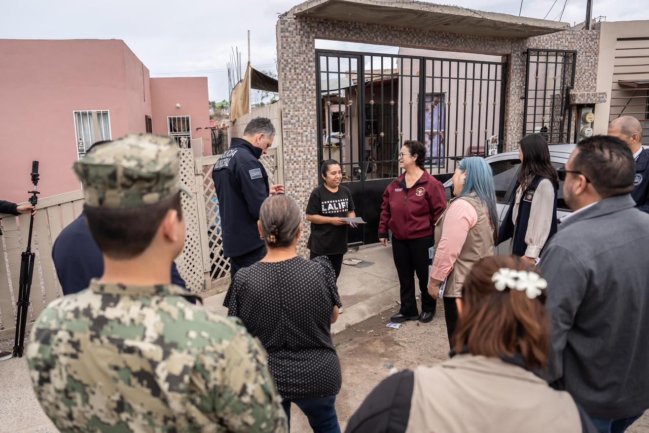 La alcaldesa Rocío Adame Muñoz encabezó la jornada por la seguridad en la colonia Real de Rosarito, donde visitó domicilios y escuchó inquietudes y demandas de los vecinos sobre diferentes problemáticas de su entorno.