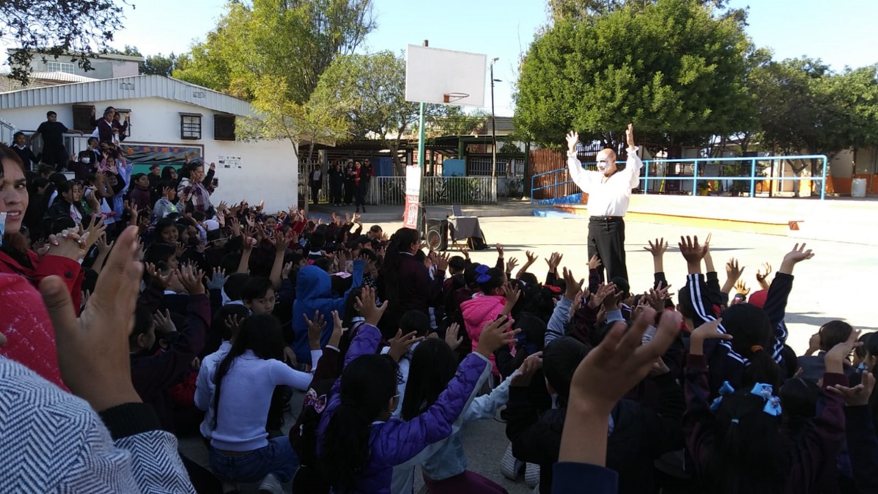 El actor ofreció una presentación especial en las escuelas primarias Leyes de Reforma y Ejido Mazatlán, en las que cerca de 100 estudiantes y docentes participaron y disfrutaron de una experiencia artística.
