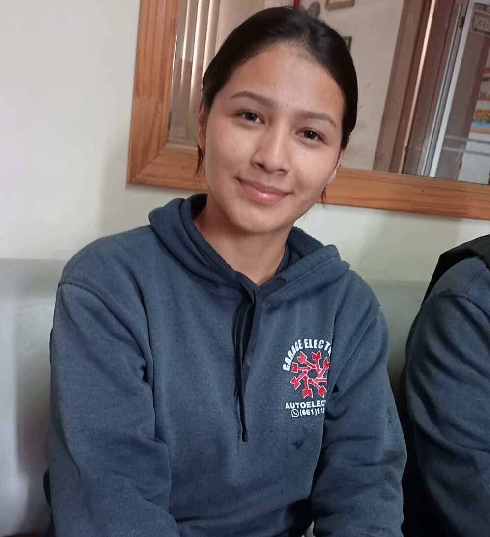 Con el apoyo de su padre, Jazmín inició su capacitación profesional en una escuela de Tijuana, donde obtuvo su certificación. Ahora, busca seguir preparándose para convertirse en una experta en mecánica eléctrica automotriz.