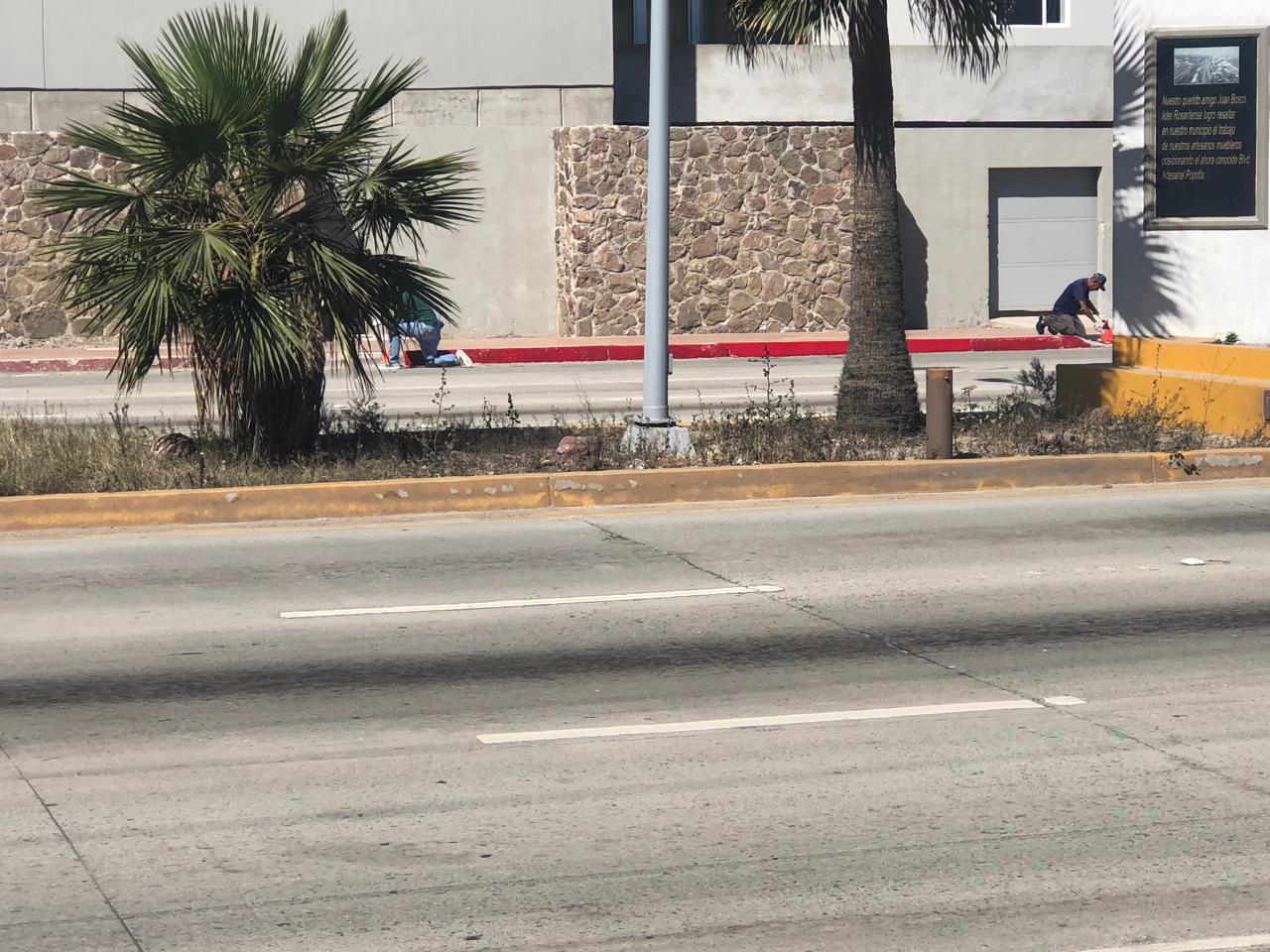 Comerciantes del bulevar Popotla se percataron hace unos días que particulares estaban pintando otra vez de línea roja las guarniciones frente a un edificio de condominios.