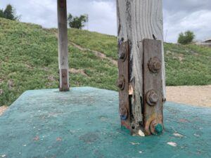 Palapas a punto de caerse por el deterioro de la madera y que podrían provocar un accidente, y juegos recreativos infantiles oxidados y con hoyos, son algunos peligros que se perciben a simple vista en el Parque Metropolitano.