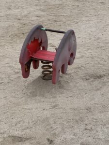 Mientras tanto, los niños que visitan este parque corren el riesgo de sufrir algún accidente en los juegos infantiles, y adultos mayores podrían caerse al bajar las escaleras con sus barandales hechizos, creados con alambres oxidados.