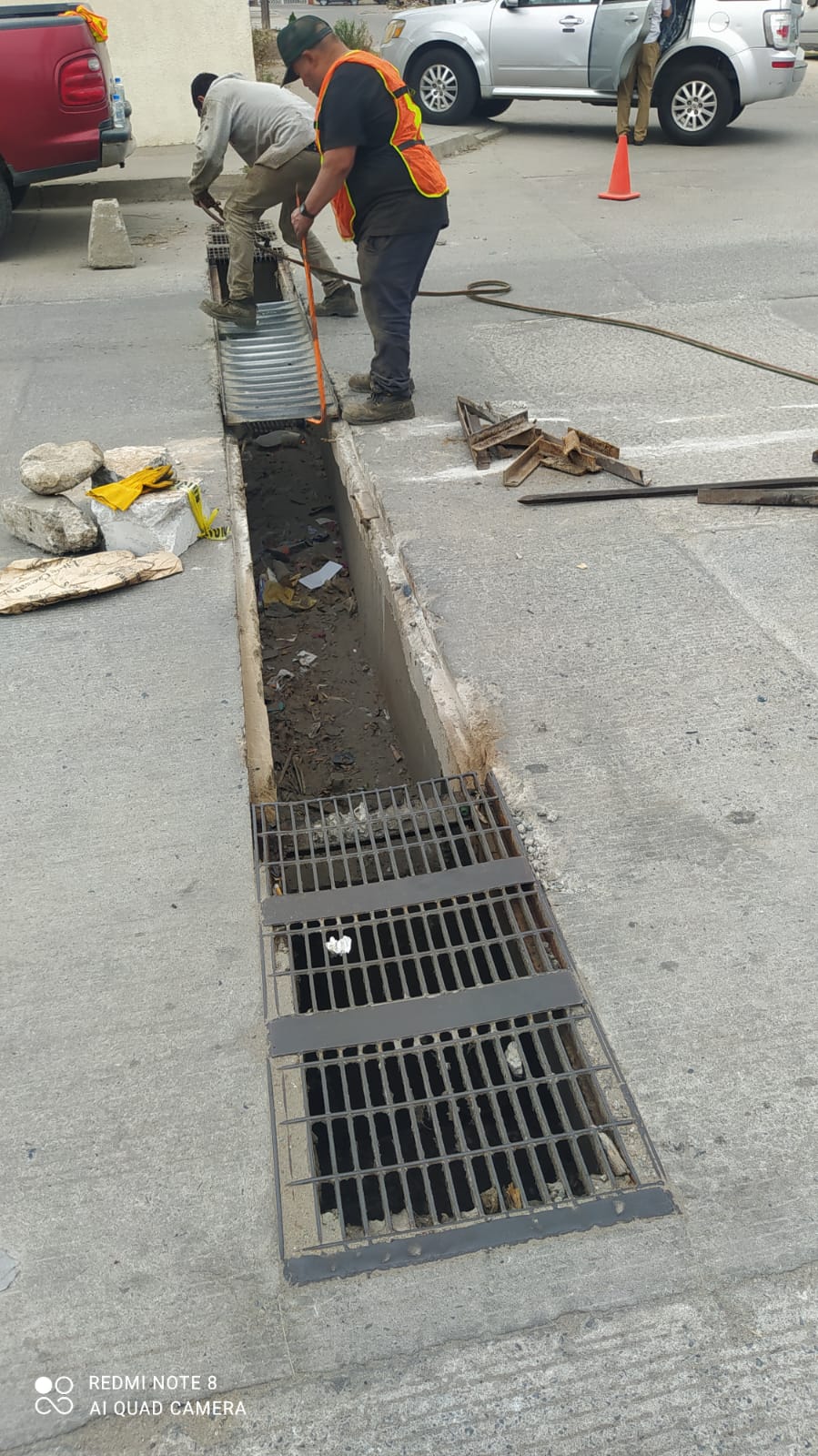 Luego de la denuncia ciudadana, personal de servicios urbanos realizó reparaciones de las rejillas dañadas en la calle Guadalupe Victoria de la colonia Lienzo Charro.