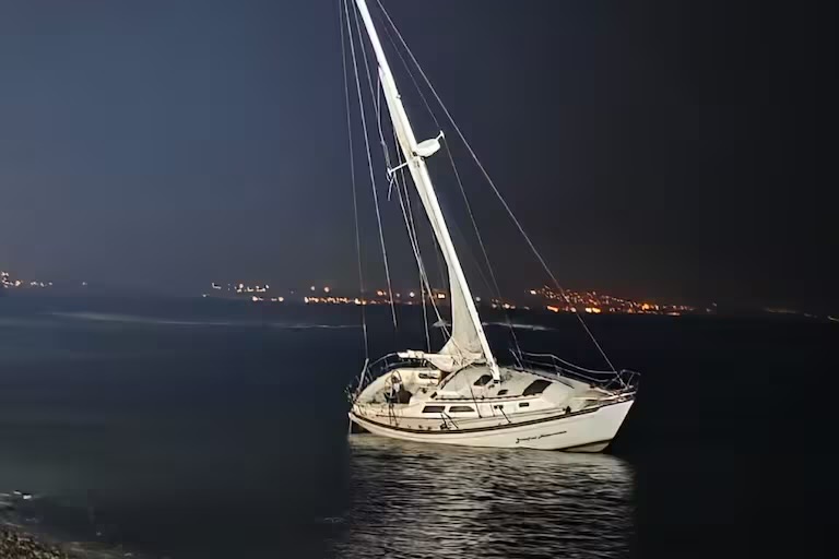 Siete personas a bordo de un velero fueron rescatadas luego de que su embarcación fuera detectada en la costa, tras encallar a la orilla del mar, la noche del lunes 15 de diciembre.