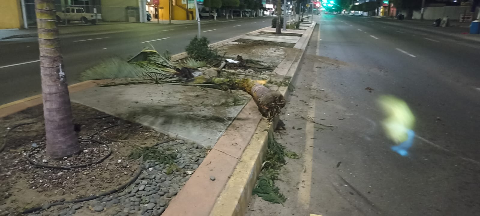 La madrugada del 3 de abril, policías municipales atendieron el reporte de un vehículo que se impactó contra el camellón central y derribó una palmera y mobiliario urbano del camellón central del bulevar Benito Juárez.
