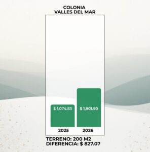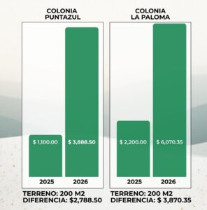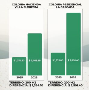 En el caso de la colonia Machado Sur que va a pagar $5,532 por metro cuadrado, si se multiplica, en el caso de un terreno de 200 metros cuadrados, esta propiedad estaría pagando $3,043 pesos de predial, comparado con $1,074 pesos que pago en 2025, un aumento de casi el 200%”, detalló Salvador Sánchez.