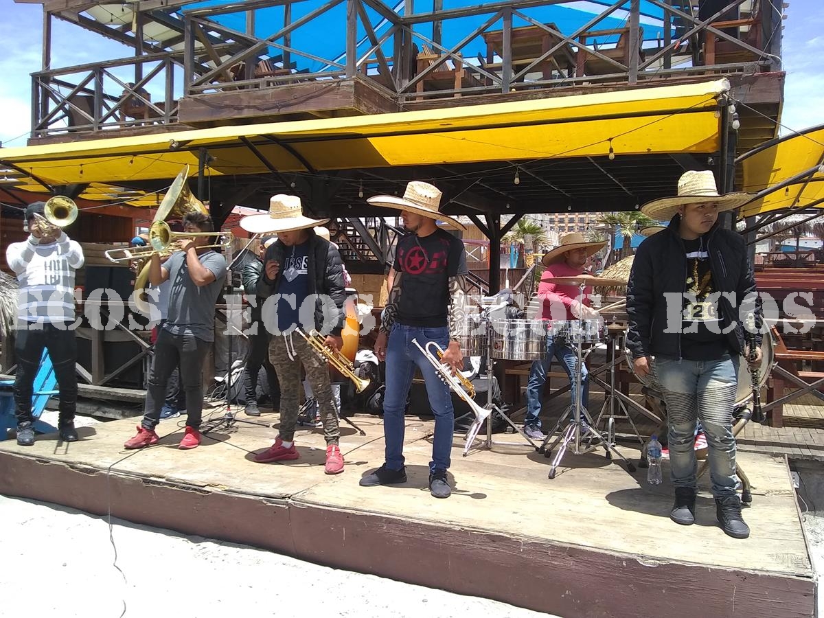 Su música se escucha por toda la zona Barbachano y llega hasta los hoteles cercanos. A veces se confunde con otras bandas que se rentan en la playa.