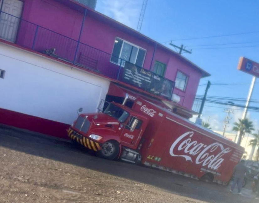 Un camión repartidor de Coca Cola provocó un socavón sobre el entronque del Bulevar Benito Juárez y Bulevar Hisense, antes conocido como Sharp, al norte del municipio.