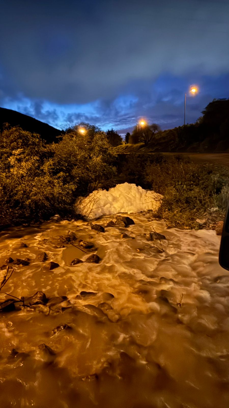 La espuma se podía percibir a simple vista desde el Rancho Leyva, incluso en la oscuridad de la tarde del lunes 6 de enero. Cabe señalar que esta problemática es añeja y cada temporada de lluvias se registra, por lo que rancheros de la zona esperan que las autoridades den una solución efectiva con sanciones que afecten a los bolsillos de los fraccionadores para que revisen sus plantas de tratamiento y eviten arrojar aguas negras sobre el cañón, pues termina contaminando el ecosistema y la playa.